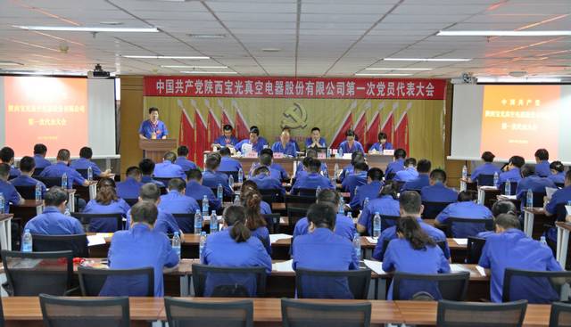 隨后,根據(jù)大會議程,全場起立,奏唱《國歌》。大會主持人胡唯同志宣布:中國共產(chǎn)黨陜西寶光真空電器股份有限公司第一次黨員代表大會開幕。