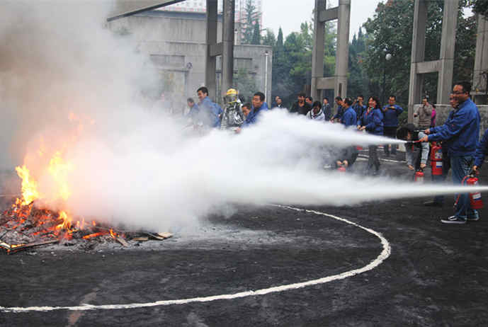 隨后,參加培訓(xùn)人員在戶外進行了規(guī)范滅火器材使用的現(xiàn)場培訓(xùn),并觀摩了使用滅火器進行初期火災(zāi)的滅火演練。