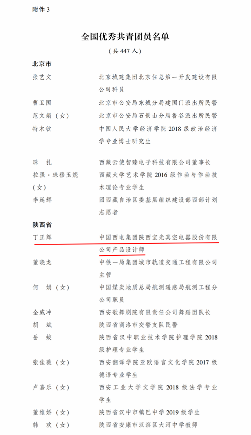 寶光股份技術中心丁正輝 榮獲“全國優(yōu)秀共青團員”榮譽稱號