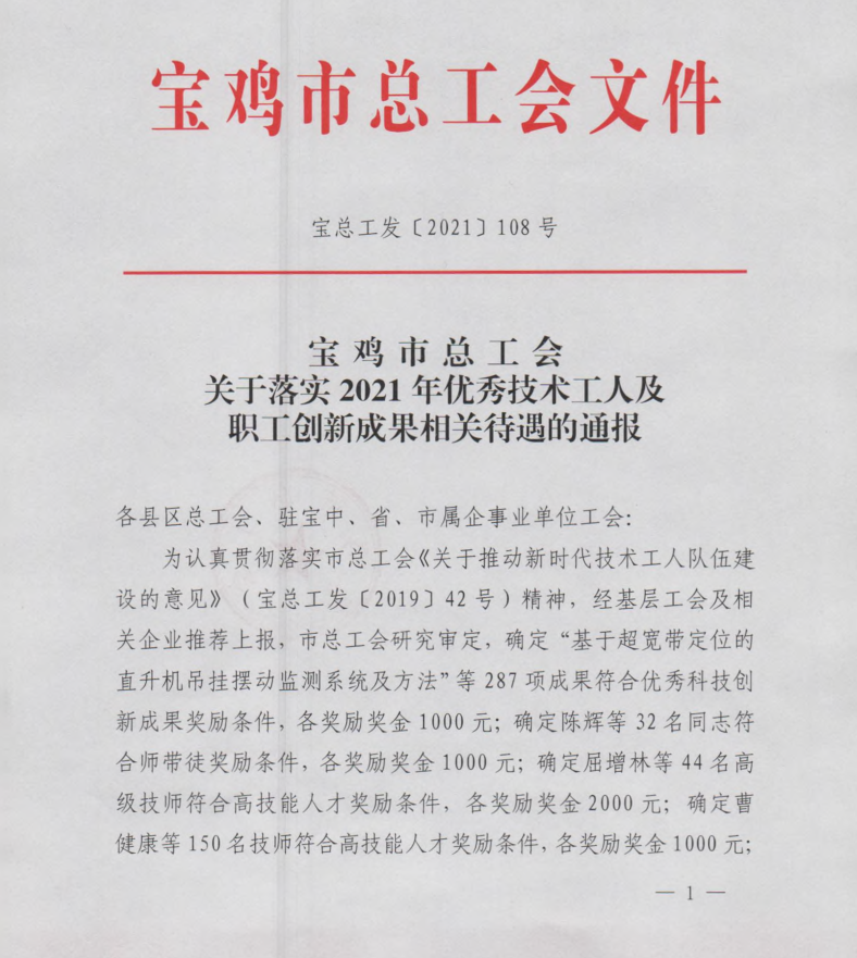 近日,從寶雞市總工會(huì)傳來喜訊,寶光股份9項(xiàng)職工科技創(chuàng)新成果榮獲“寶雞市優(yōu)秀科技創(chuàng)新成果獎(jiǎng)”。