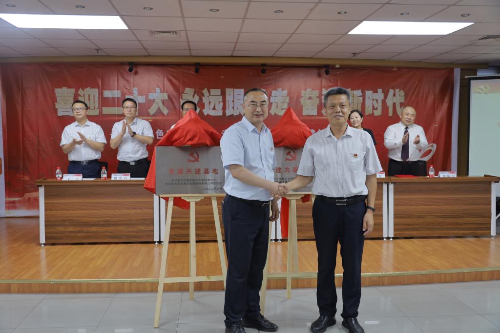 隨后,雙方代表在各位領(lǐng)導(dǎo)嘉賓的見證下進(jìn)行了黨建共建方案簽約。段恒春與謝洪濤為“黨建共建基地”揭牌。