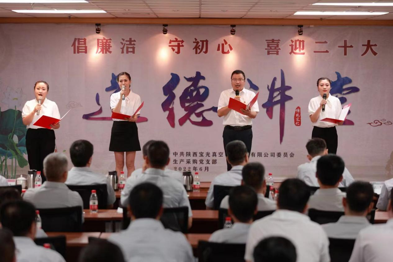 為將黨史學(xué)習(xí)教育不斷引向深入,全面提升廣大職工道德素養(yǎng),進一步促進企業(yè)精神文明建設(shè),切實激發(fā)廣大干部職工砥礪奮進、爭開新局的信心和決心,以更加飽滿的工作熱情迎接建黨101周年和黨的二十大的勝利召開,6月28日下午,由寶光股份黨委主辦,生產(chǎn)采購黨支部承辦的“倡廉潔、守初心、喜迎二十大”主題道德講堂如期舉行。