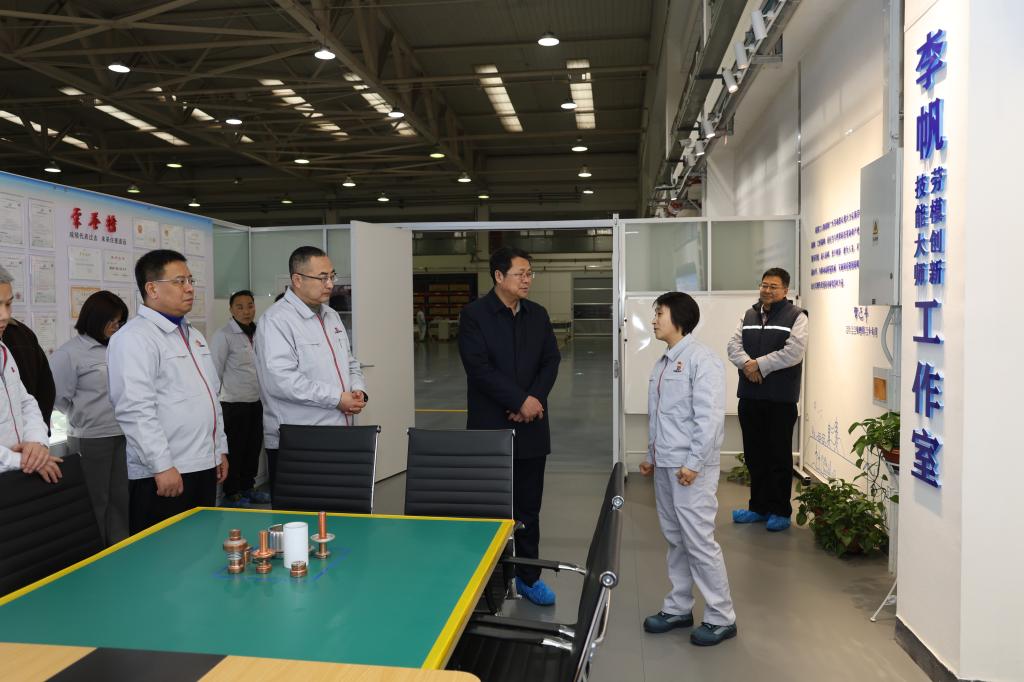 馬宏偉一行首先參觀了寶光集團(tuán)所屬寶光股份滅弧室產(chǎn)品制造部3號(hào)產(chǎn)線、5號(hào)智能制造產(chǎn)線、李帆勞模技能大師工作室,詳細(xì)了解了企業(yè)發(fā)展歷程及技術(shù)創(chuàng)新、智能制造方面的情況,聽取了工作室在職工創(chuàng)新、技藝傳承、數(shù)字化制造技術(shù)應(yīng)用等方面取得的成果。