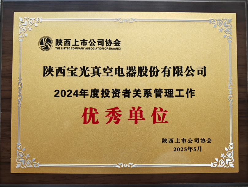 寶光股份作為國內(nèi)真空滅弧室領(lǐng)域的龍頭企業(yè),始終將公司治理作為高質(zhì)量發(fā)展的重要基石。此次獲獎既是對公司過去工作的肯定,更是對未來進(jìn)一步優(yōu)化投資者關(guān)系管理工作的激勵。榮譽(yù)鞭策前行,未來,公司將持續(xù)以高質(zhì)量信息披露傳遞發(fā)展信心,以更加積極的態(tài)度和更加務(wù)實(shí)的舉措,做好投資者關(guān)系管理工作,與投資者建立更加緊密、互信的關(guān)系,為公司的持續(xù)健康發(fā)展和資本市場的穩(wěn)定繁榮貢獻(xiàn)力量。