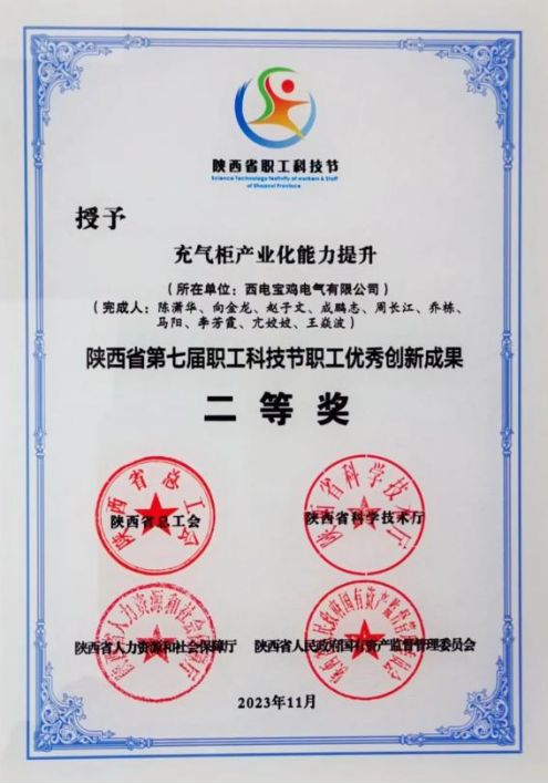 陜西省職工優(yōu)秀創(chuàng)新成果二等獎(jiǎng)——西電寶雞電氣 “充氣柜產(chǎn)業(yè)能力提升”