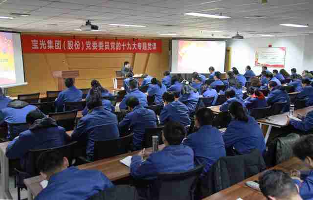 12月13日晚18:30時,寶光集團(股份)黨委委員黨的十九大精神專題黨課,在公司科技大樓2樓大會議室進行,李軍望同志以《統(tǒng)一思想抓落實——深入學習貫徹習近平新時代中國特色社會主義思想》為主題,為來自進出口公司、C產(chǎn)品制造部、固封極柱產(chǎn)品制造部等3個黨支部的100余名基層黨員做了專題黨課。