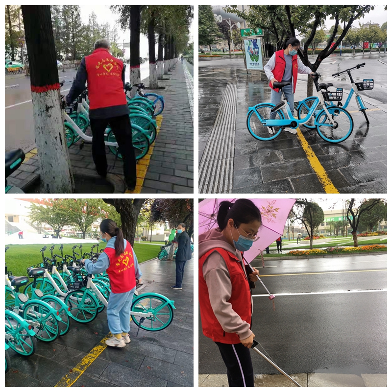 在近日連續(xù)強降雨的天氣里,志愿者們風雨無阻每天早上堅持7:30按時到崗開展志愿服務(wù)活動。他們身穿紅馬甲,手拿垃圾夾,冒雨沿著金渭大橋南至寶光路轉(zhuǎn)盤巡回開展志愿活動,認真地清理路面上的碎紙屑、飲料罐、煙頭等垃圾。同時將共享單車擺放在規(guī)定的區(qū)域內(nèi),保持整齊美觀和人行道路的通暢。