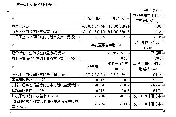 寶光股份2012年一季度主要財(cái)務(wù)指標(biāo)