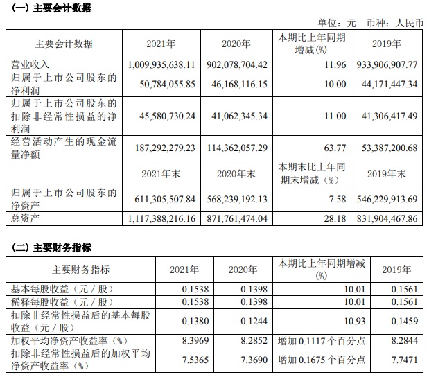 寶光股份2021年度主要財(cái)務(wù)指標(biāo)